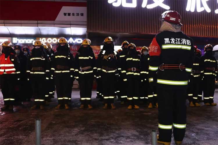 大型商場(chǎng)建筑內(nèi)部結(jié)構(gòu)復(fù)雜,火災(zāi)荷載大,一旦發(fā)生火災(zāi)火勢(shì)蔓延快,撲救難度大。此次演練嚴(yán)格執(zhí)行了作戰(zhàn)訓(xùn)練安全相關(guān)規(guī)定,充分利用了建筑內(nèi)部消防設(shè)施,偵察準(zhǔn)確到位,合理運(yùn)用撲救大型商場(chǎng)火災(zāi)的戰(zhàn)術(shù)措施,全體參戰(zhàn)指戰(zhàn)員不畏嚴(yán)寒,充分展現(xiàn)了英勇頑強(qiáng)、敢打必勝的北極消防精神,達(dá)到了滅火救援演練的預(yù)期目的,為完成冬季各類(lèi)滅火救援準(zhǔn)備工作打下了堅(jiān)實(shí)的基礎(chǔ)。