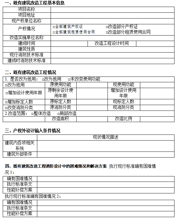 2.0.11 既有建筑改造工程消防設(shè)計(jì)應(yīng)填寫《既有建筑改造工程消防設(shè)計(jì)信息表》 并納入消防設(shè)計(jì)專篇,表格見附錄 A。