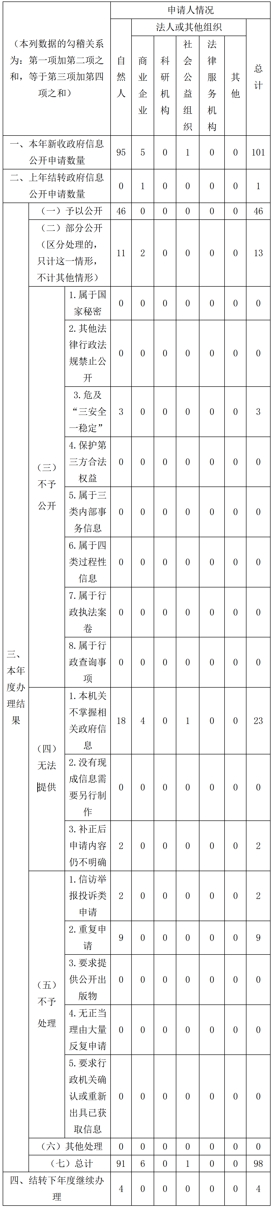 (二)堅持能公開盡公開原則,持續(xù)做好依申請公開答復處理工作。進一步優(yōu)化依申請公開申請、接收、答復信息化業(yè)務(wù)平臺,不斷改進服務(wù)質(zhì)量,提高申請公開效率。全年共收到有效申請公開件87件,其中網(wǎng)絡(luò)申請68件,信函申請19件。46件予以公開,13件部分公開,3件不予公開,25件無法提供。予以公開和部分公開的信息占比近70%,不予公開占比僅3.4%。全年未收到以應(yīng)急管理部為被申請人的政府信息公開行政復議案件和行政訴訟案件,未向申請人收取任何費用。